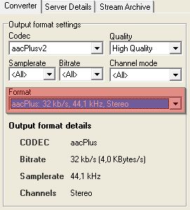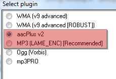 3-Na janela que abrir, escolha o formato desejado, se seu streaming for em MP3 escolha o MP3 (Lame Enc)/MP3 Pro e se for em AAC+ escolha o aacPlus v2